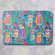 Ai illustration of watercolor folk art cats and flowers in blue, orange, red, purple and pretty bright colors. Add happy and whimsical flare to your bathroom with this cute bath mat!