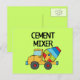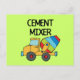 A colorful cement mixer of blue, red, green, and yellow and text that reads "Cement Mixer" on T-shirts, bibs, bodysuits, tote bags, magnets, and other items that are great for kids who like big construction vehicles.