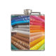 Well made flask, a little better than I had expected. Flask came in clear plastic box which gave it a nice presentation when I took it out of the zazzle packaging. Image is not printed on flask but on sticker. Don't know how this will hold up I haven't used it yet. This would make a Great gift! I plan to purchase more for friends! Cheers. I thought a little brighter than computer. Very crisp, writing wasn't