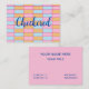 Colorful Checkered Pattern Business Card designed by Nisha Prabhu. Fully Customizable. Personalize with your details. This Colorful Checkered Pattern Business Card is a unique and eye-catching way to make a statement with your contact information. The front of the business card features a beautiful checkered pattern in various bright colors, creating a bold and playful design. On the back of the card, you can customize it with your name, title, contact details, and any other relevant information. Whether you're attending networking events, meeting clients, or simply exchanging contact information, this Colorful Checkered Pattern Business Card will leave a lasting impression and showcase your creative and beautiful personality.
