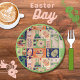 Beautiful, colorful Easter pattern that matches some of the colors of the main design. This cute, whimsical, cool collage design with orange, blue, green, and salmon-pink colors features irregular squares and quadrants with cute decorative paintings of bunnies, eggs, flowers, and egg baskets. Great design for Easter paper plates if you want to make an Easter party or just have a brunch and decorate your dining room.
