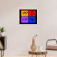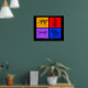 Purchase this poster of cheetahs in colors of orange, red, purple and blue.