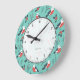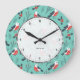 Colorful Christmas Pattern With Cute Birds Large Clock