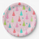 Bring cheerful holiday charm to your table with these festive Christmas paper plates! Featuring a delightful pattern of whimsical Christmas trees in bright pink, aqua, green, and red on a soft pastel background, these plates add a fun pop of color to any celebration. Scattered white snowflakes and playful dots complete the joyful winter look.