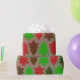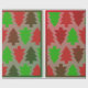 This features Christmas trees in red, white and green with a red and green backround. This image has a white border. This is available in assorted styles, colors and sizes.