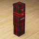 Stylish red, green, white, and blue wine gift box done in the traditional Scottish clan MacRae tartan plaid pattern. Graphics of a red and white band, runs across the top, with a red wax looking seal, on the front of the band. White text, on the front and back of the box is ready to personalize to read what you want. Great for any occasion, just add wine.