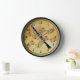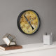 The size of the clock is dramatic and the abstract alcohol ink design is soothing and intricate at the same time. I chose the black frame that adds pop to the blue and gold design. The gold printing would be better in a slightly darker or larger font. I love it and I’m looking for just the right place in ny new apartment. I would recommend this clock for a personal gift or a present. I feel that the quality is excellent for the money! I’m a bit of a clock nut so I’m pretty particular about my purchases. The clock is larger in diameter than many if the clocks I have, so it stands out very well. I think a slightly darker printing color and a moderately larger size would best suit a professional decor or add more impact in a work place item.