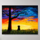 Colorful Clouds Landscape Tree Black Cat Poster