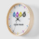 A colorful wall clock to spruce up your desk at work or at home. It also could be a nice gift for a graphic designer. It comes with CMYK Ink Drops and "Colors Powers" as customizable text and can be used for the National Color Day on October 22.