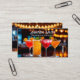 A colorful business card with a row of different cocktail glasses for a professional bartender