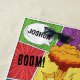 A colorful comic book pop art style design featuring your custom name. A cute and fun comic book themed illustration with bright colors and superhero action words and drawings. An ideal design for anyone who loves super hero designs, comics, cartoon style illustrations, colorful action filled designs and pop art! Personalize this funny comic book style design and make it your own!