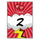 A colorful comic book pop art style wedding design. A cute and fun comic book themed illustration with bright colors and wedding themed superhero action drawings. Comic book style typography is used in this wedding design. An ideal wedding design for anyone who loves super hero designs, comics, cartoon style illustrations, colorful action filled designs and pop art! A bright and modern wedding table number with fun and unique comic book elements. Matching wedding invitations and other stationery items are also available. Customize the number and purchase each tables number individually according to how many table numbers you need.