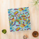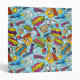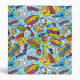 Colorful comic book graphics with speech bubbles on blue background, seamless repeat pattern