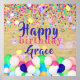 Personalized birthday poster design featuring colorful confetti and balloons on a old paper background. The text is fully customizable.