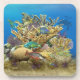 This design features an image of several colorful reef fish over a shallow coral reef. The illustration is by artist Dawn Witherington.
