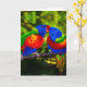 Vibrant and colorful photograph of a couple of loved up parrots affectionately pecking each other.