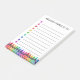 Colorful school themed things to do sticky notepad personalized with your name above colorful stars and a row of crayons in a rainbow gradient. Kindergarten teacher to do list with colorful crayons and stars.