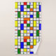 This towel set has a green washcloth, an orange hand towel, and a bath towel with a mid-century modern design of a grid with colored squares and rectangles. It also has colored circles placed on the grid lines. If you like the design but prefer different colors, message me.