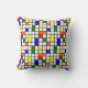This throw pillow has a mid-century modern design of a grid with colored squares and rectangles. It also has colored circles placed on the grid lines. If you like the design but prefer different colors, message me.