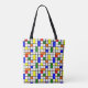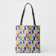 This tote bag has a mid-century modern design of a grid with colored squares and rectangles. It also has colored circles placed on the grid lines. If you like the design but prefer different colors, message me.