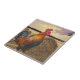 Colorful Crowing Rooster and Hay Bales Ceramic Tile