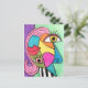 This bright, colorful art postcard was created with my original abstract chalk pastel art featuring a whimsical cubism design with big eyes and red lips in a cheerful vibrant pink, green, blue, yellow, purple colorblock design with a touch of black and white stripes. These little works of art are not only great to send through the mail, they are also an inexpensive way to collect all the pieces you love and look great framed and matted.