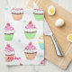 Cute little cupcakes decorate this great kitchen towel. In colors of pink, green, blue, and yellow this towel matches anything. You customize the text at the bottom.