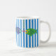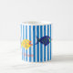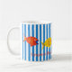 A delightful, happy, fun mug to customize, personalize or purchase plain. Blue stripes and primary colored fish paired together by artist, dagdart.