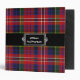 Great looking custom three ring Avery binder done in the colorful traditional MacPherson family tartan plaid pattern. Graphics of a black band, runs across the middle, and is decorated with a pewter tone and black text plaque, on the middle front. Personalize the white text, on the plaque, to suit your needs. Great for home, office, or school. Inserts and pages sold separately.