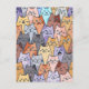 Colorful Cute Cat Crowd Pattern Whimsical Cat Face Postcard