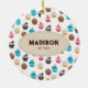 Colorful Cute Cupcakes Pattern Monogram Ceramic Ornament