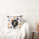 Colorful Cute Funny Cats & Paw Pattern Monogram Throw Pillow