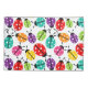Lady bugs in different bright colors over white background, seamless pattern and small print version