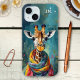Phone case featuring a colorful painting of a giraffe with scarf. You can add your custom initials (optional, you can also delete the template). Beautiful for an animal lover and also a great gift for Christmas.