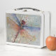 DAZZLING COLORFUL DRAGON FLY LUNCH BOX you can customize with your name ... Beautifully colored wings of pink, orange, yellow, blue and purple with an encouraging quote - Fun for all your friends and family .. The DAZZLING COLORFUL DRAGON FLY image has been painted by the designer with watercolors