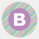 Colorful Diagonal Candy Stripes Lilac Monogram Classic Round Sticker
