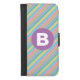Colorful Diagonal Candy Stripes Purple Monogram iPhone Wallet Case
