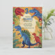 Make your little one’s celebration roar with joy! This colorful dinosaur jungle adventure 3rd birthday invitation features bold illustrated dinos, tropical leaves, and a playful number at the top for an exciting party announcement. The warm background and vibrant artwork create a fun, energetic look kids love. Personalize the name, party details, and RSVP to create a unique invitation your guests will adore.