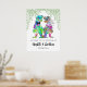 Welcome you guests with this fun colorful psychedelic dinosaur themed wedding welcome poster sign with funny dinosaur bride and groom with watercolor botanical greenery. If you and your partner love dinosaurs this is the perfect way to bring some roarsome dino love to your special day. Unique T-Rex and foliage watercolor illustrations in blue pink purple yellow orange and green hues. Easy to use templates with modern whimsical typography script. Original artwork by artist Catherine Sweetman