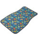 Colorful Dinosaur silhouette pattern. Tyrannosaurus Rex, titanosaurs, Triceratop, raptors, Ankylosaurs, Dino-Birds, Stegosaurus, Apatosaurus, Pteranodon and more in a colorful pattern in blue background, and dinosaurs in green, blue, yellow and orange.