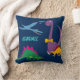 Colorful Dinosaurs Child's Name Navy Throw Pillow
