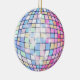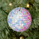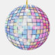 A fun ceramic ornament featuring a multicolor disco ball! Perfect for a 1970s themed Christmas tree or gift for a disco lover.