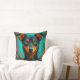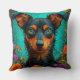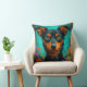 Vibrant decorative throw pillow featuring a stylized dog portrait against a teal floral background. Perfect for home decor, accent seating, pet lovers, and colorful interiors seeking playful modern art details.