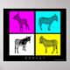Purchase this poster of donkeys in colors of pink, light blue, white and yellow.