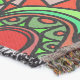 A quality printed throw has its advantages. This is a much finer weave throw than its loopier cousins, and though lighter, it is worth the investment for custom room accessorizing. The back is much prettier than the typical brown, and the fringe on the long sides very vivid, the selvage nicely done. Before photographing, I washed the throw in cold water, delicate, with a thicker woven throw the same size. On tumble dry low, this throw was dry in half the time as the other. This is a very practical quality if you use throws for furniture covers or to wrap up in frequently. The sleekness of the fabric makes it a great layer for accenting or protecting without the feeling of sitting on too much stuff. Perfect for napping or when you feel a light chill coming on. The color printing is beautiful and on this fabric, matched the design and color of my Photoshop image. This is an advantage for blending room fabrics and colors. The fringe on the short sides prints the colors from the design image and therefore varies from the side fringe. I streaked a white fractal line through the plaid pattern to give the illusion of weaving. This printed as crisp as an illusory thread, and put some white in the short side fringe, showing another advantage of print vs loomed- for artistic purposes, line lines, detail, and color integrity can be planned and preserved. My loomed throws have color limitations and more of a needlepoint texture. Print throws reproduce an exact image. The throw felt a little stiff straight out of the package, but this went away in the first delicate wash. Of course I searched the wash water for ink or bleeding and there was none.