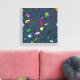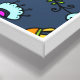 Colorful Doodle Flower Pattern on Dark Blue Canvas Print