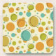 Add that splash of fun and color to your coffee table with this funky circles mid century modern styled coaster. This whimsy geometric retro pattern features circles and dots in the colours of turquoise blue, gold, avocado green, orange, and black, on a light cream background.