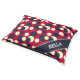 After a busy day of food, walk, zoomies and play time, your dog deserves a good night's sleep on a comfortable bed. This colorful rectangular pet bed is patterned with dark blue and light yellow dots of different sizes, on a red background. For easier cleaning, the dog bed has a removable cover, which can be gently machine washed. Click on 'Personalize' to enter your dog's name, which will appear across one corner of the bed on the midnight blue panel. A stylish and practical accessory for pet and home.