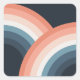 Abstract illustration of retro style rainbow design in pink, pastel pink, gray, turquoise, blue, dark blue colors on navy blue background