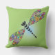 Colorful Dragonfly Damselfly Design outdoor throw pillow with customizable background color.